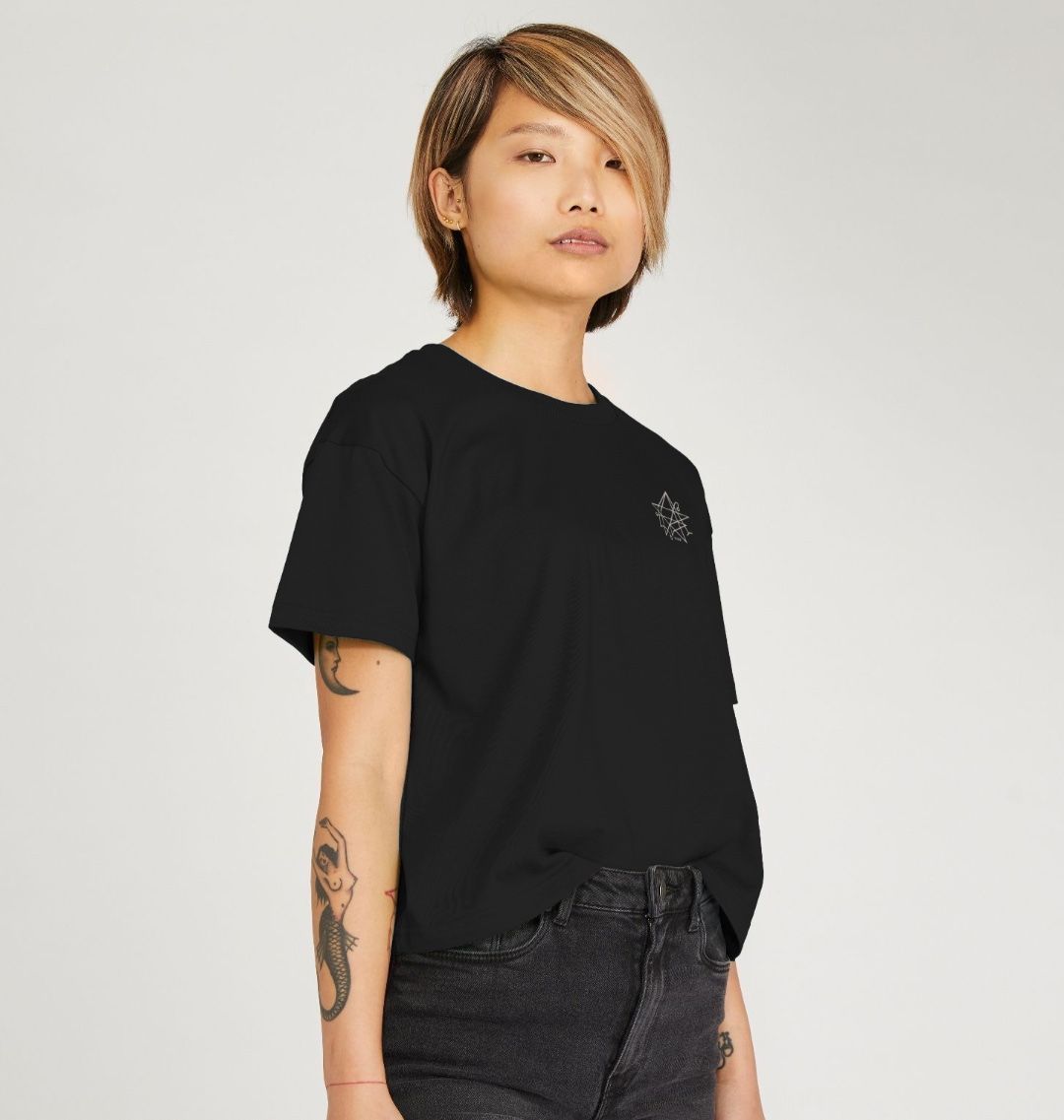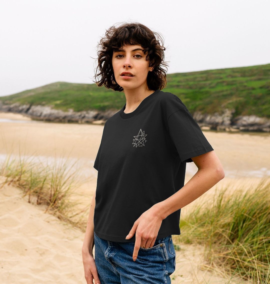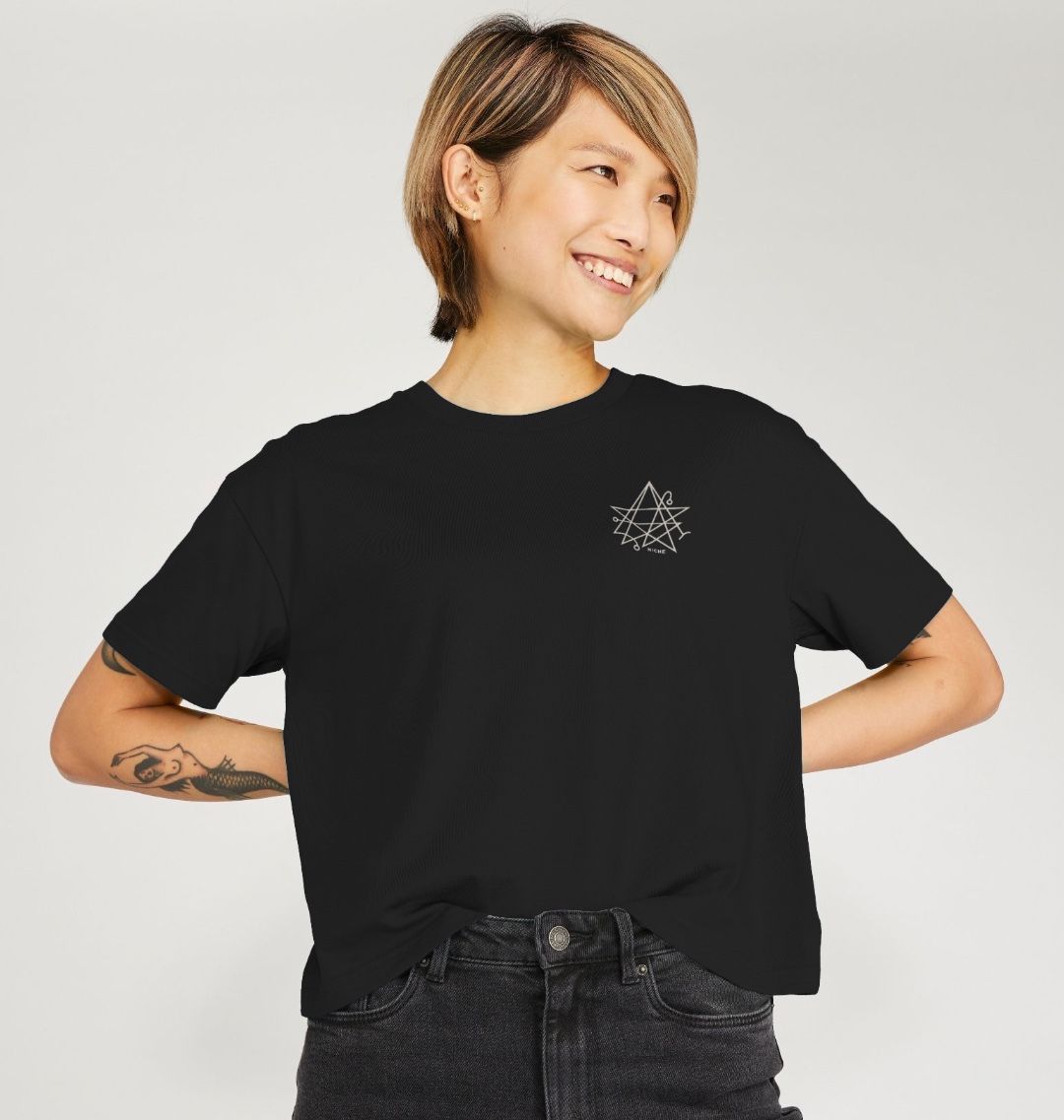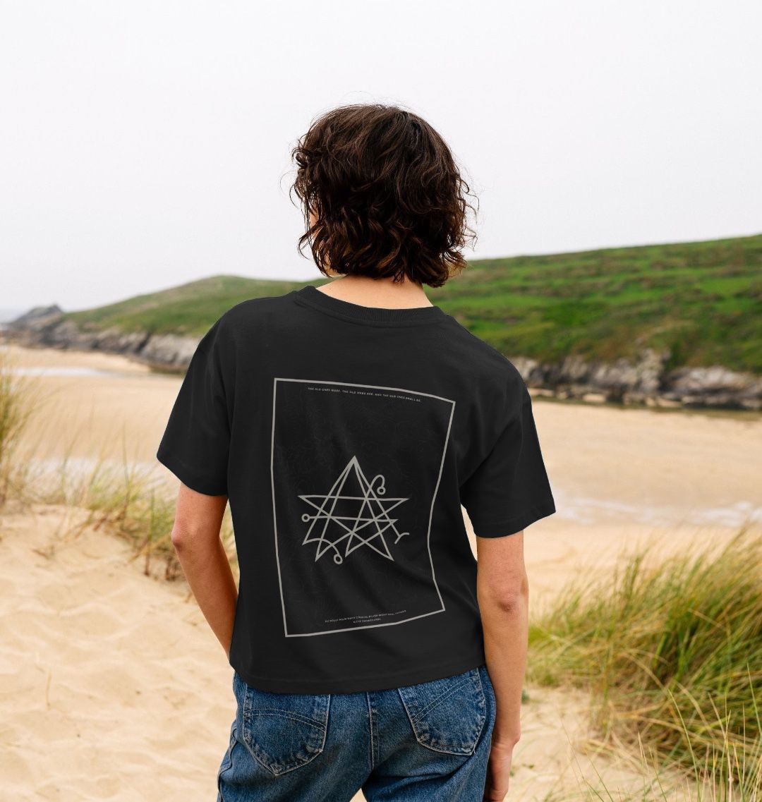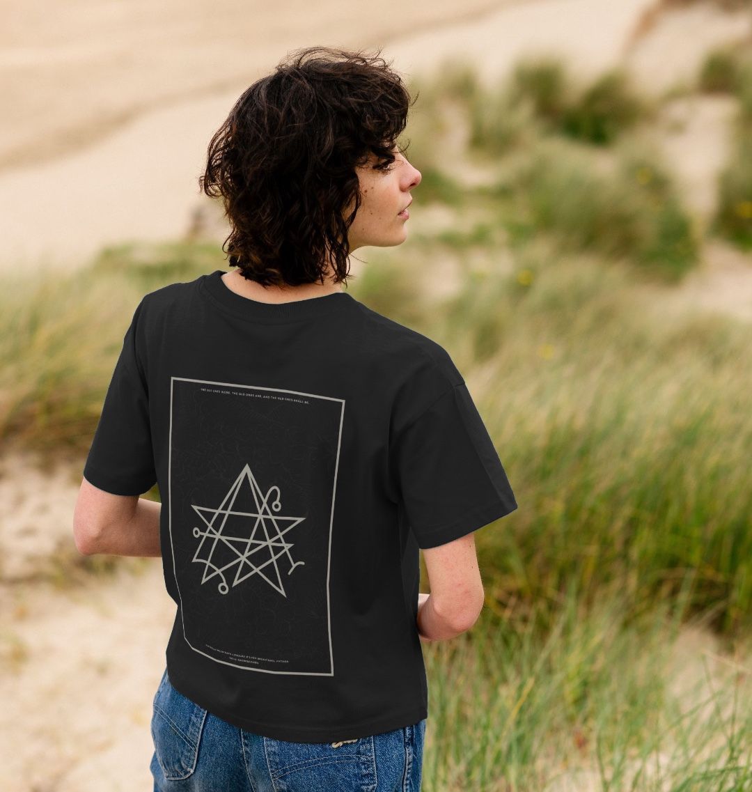 Embrace the eldritch horrors and pay homage to the elder gods. The Necronomicon women's shirt is a cropped and relaxed modern take on a versatile organic cotton tee, best worn while praying to Cthulhu and repenting for your sins. Pair with the necronomicon shorts or joggers for a full kit that would make even the Old Ones jealous.
